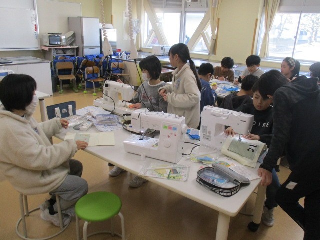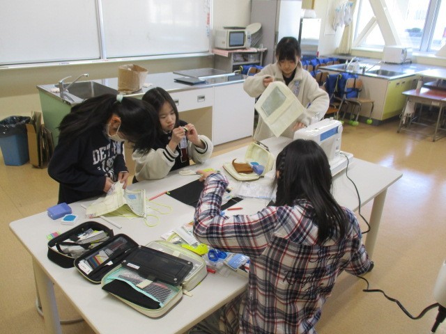 5年2組の5時間目は、家庭科の学習でした。ウォールポケットを完成させようとミシンをがんばっていました。