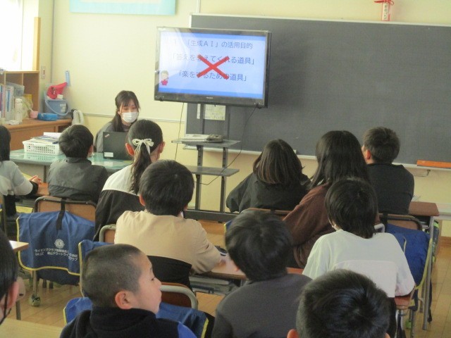 5年1組の3時間目は、AIについての話でした。AIをなぜ利用するのかや利用するときの注意すること等を考えていました。