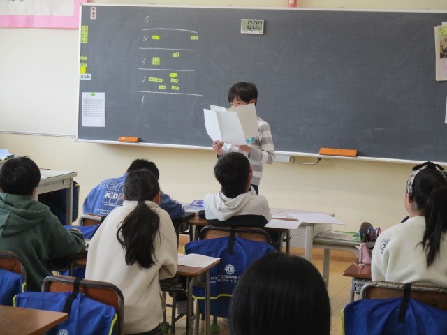 5年2組は、3時間目に話合いをしていました。友達の意見を聞いているところでした。