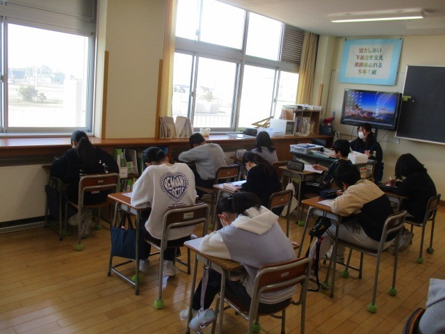 5年2組の2時間目は、国語科の学習でした。友達のスピーチを聞いていました。