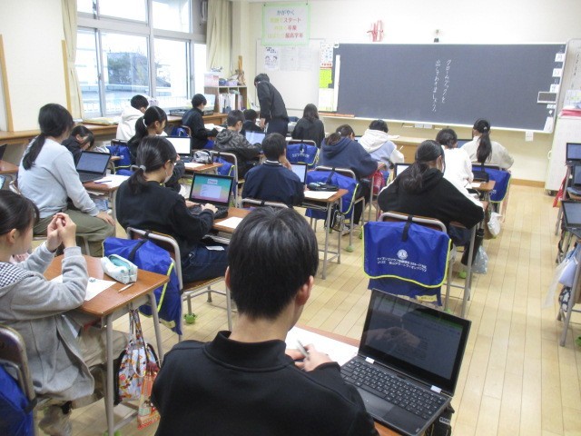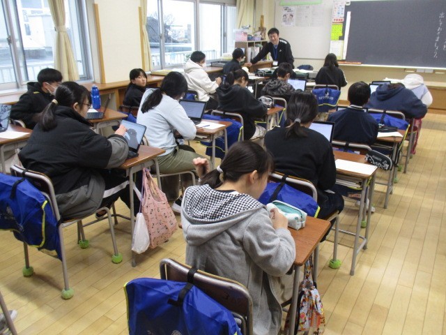 6年生の3時間目は、国語科の学習でした。動画の音読を聴いていました。