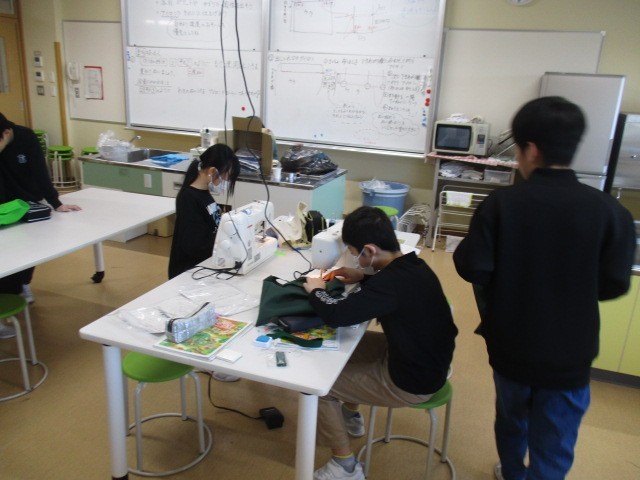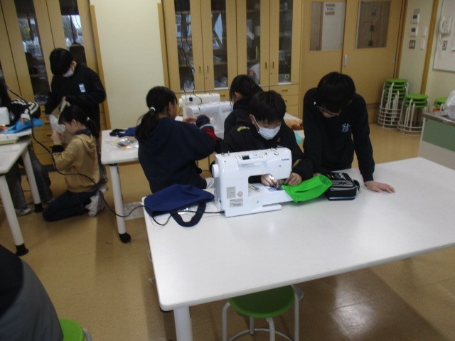 6年生の3時間目は、家庭科の学習でした。ミシンを使っての袋づくりが完成してきたようです。