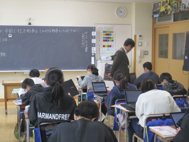 6年生の1時間目は、社会科の学習でした。「満州事変」について調べていました。
