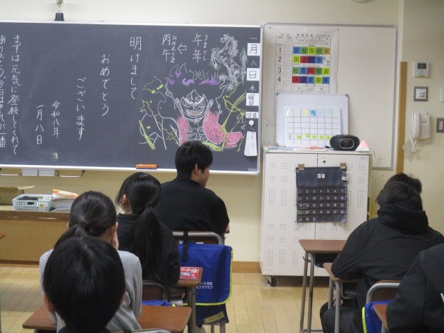 6年生の5時間目は、書写の学習でした。「新春の志」という書き初めの練習をしていました。