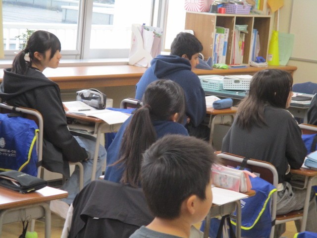 6年生の5時間目は、「卒業に向けて」の話でした。事務官さんや助手さん、用務員さん、調理員さん等、色々な人たちとの出会いを振り返っていました。