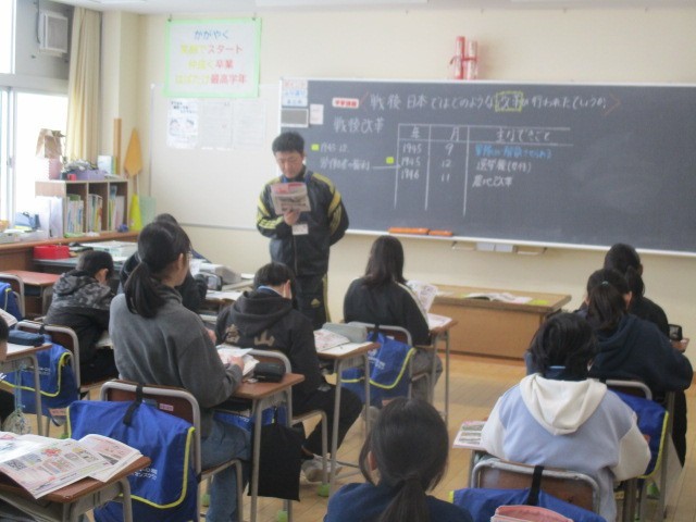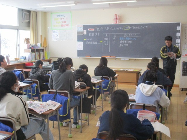 6年生の1時間目は、社会科の学習でした。戦後の日本の様子を写真を見ながら考えていました。