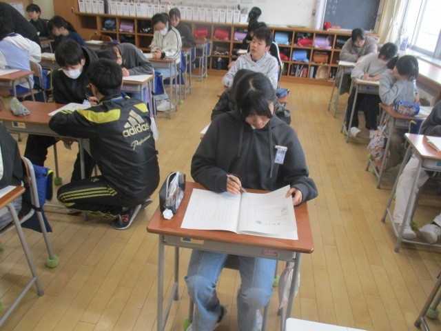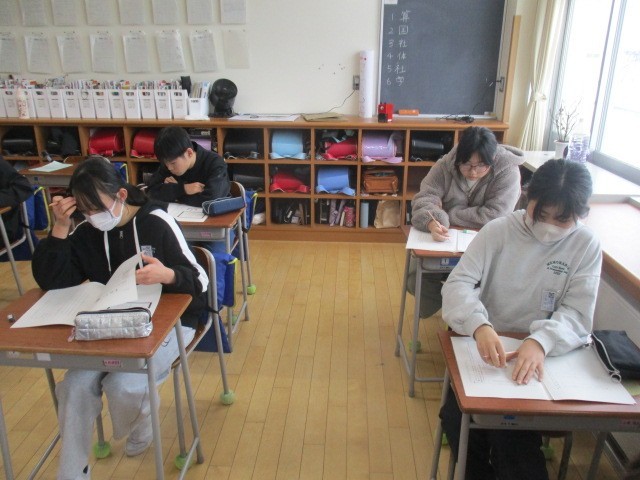 6年生の3時間目は、社会科の学習でした。戦争についての自分の思いを友達に伝えていました。