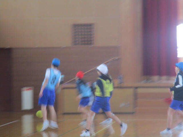 6年生の3時間目は、体育科の学習でした。体育館でサッカーをしていました。