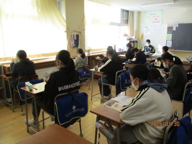 6年生の3時間目後半は、読書タイムでした。じっくりと本に浸る6年生です。
