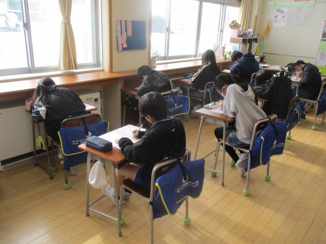 6年生の5時間目は、国語科の学習でした。テストをしていました。