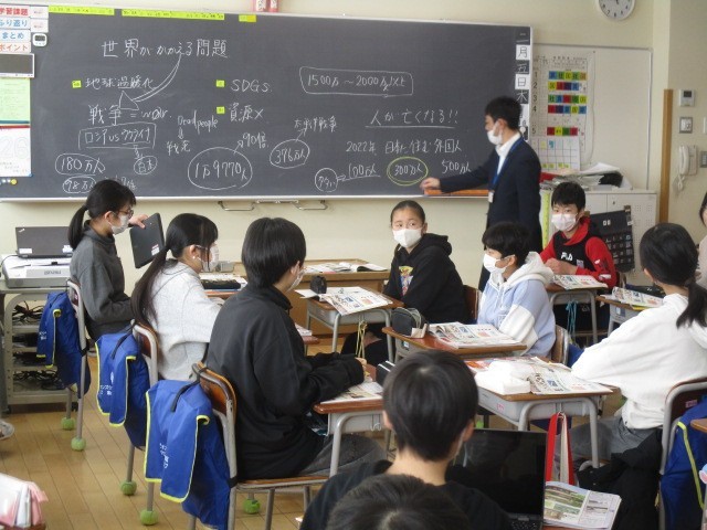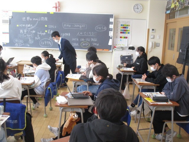 6年生の1時間目は、社会科の学習でした。世界がかかえている問題について考えていました。