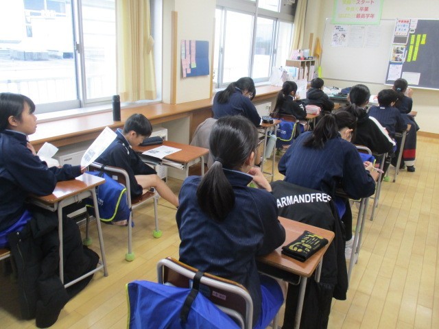 6年生は、1時間目に中学校の話をしていました。今日、中学校説明会なので、中学校のことを話し合っていました。