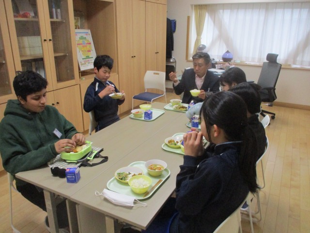 今日から6年生と一緒に給食を食べることになりました。初日の今日は、5人の6年生さんが校長室にやってきてくれました。サイコロトークも楽しかったです。ありがとうございました。