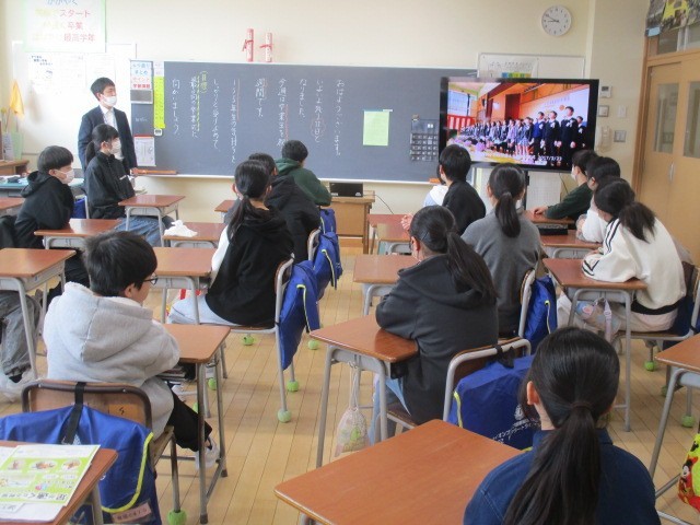 6年生は、1時間目に卒業式の歌について考えていました。他の学校の歌を歌う動画を見ながら考えていました。