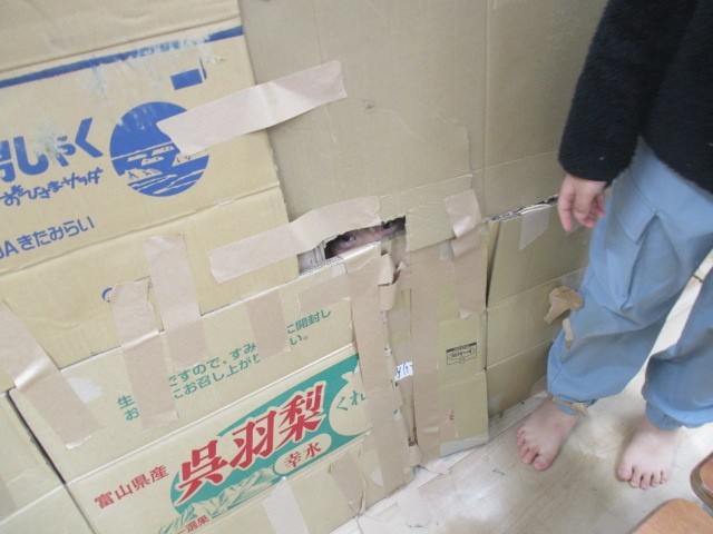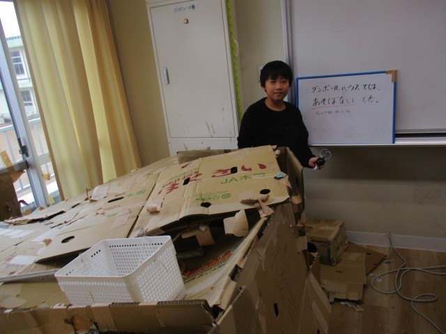 つばめ野級2組の3時間目は、交流級で音楽科の学習をしたり、段ボールハウスの補修をしたりしていました。