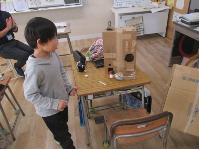 つばめ野級2組に3時間目に行くと、自分たちがつくったガチャガチャを紹介してくれました。まわすと商品が出てくる本格的なガチャガチャでした。