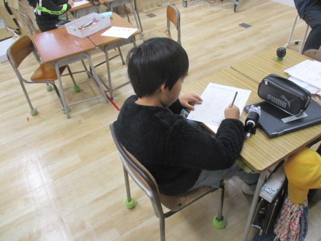 つばめ野級2組の1時間目は、算数科の学習でした。プリントを進めていました。