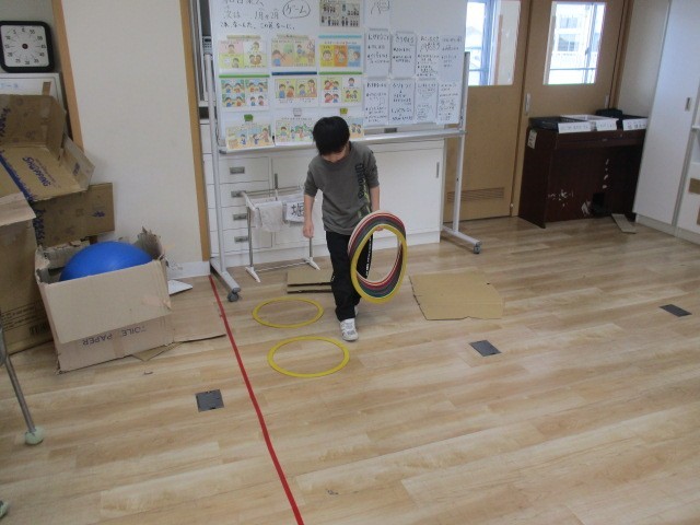 つばめ野級2組は、5時間目に体を動かしていました。自分たちでコースをつくって動いていました。