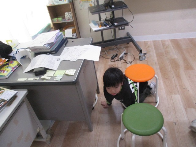 つばめ野級2組は、5時間目に運動していました。バランスボールを使って運動したり、交流級で鬼ごっこしたりしていました。