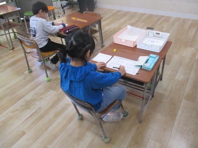 つばめ野級2組の1時間目は、算数科の学習でした。プリントをしていました。