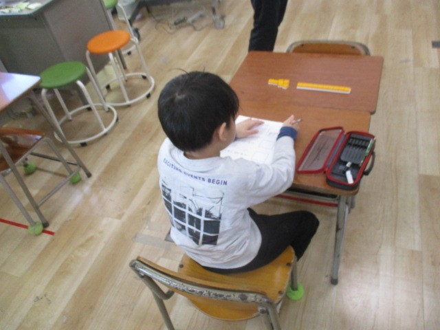 つばめ野級2組の3時間目は、算数科の学習でした。プリントしていました。