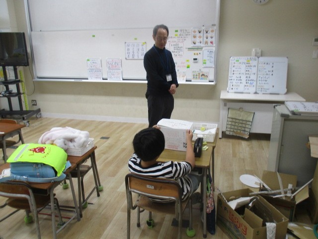 つばめ野級2組の3時間目は、プリントの時間でした。絵や数字のプリントを進めていました。