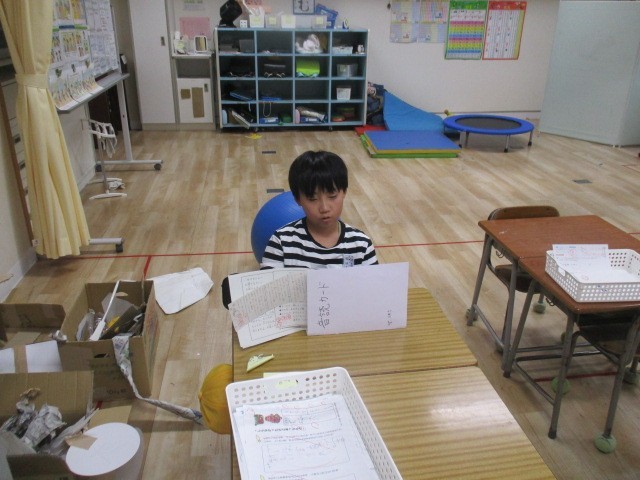 つばめ野級2組の3時間目は、プリントの時間でした。絵や数字のプリントを進めていました。
