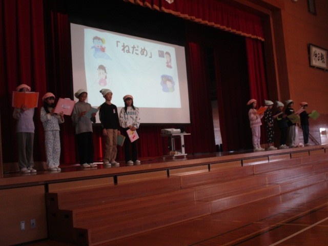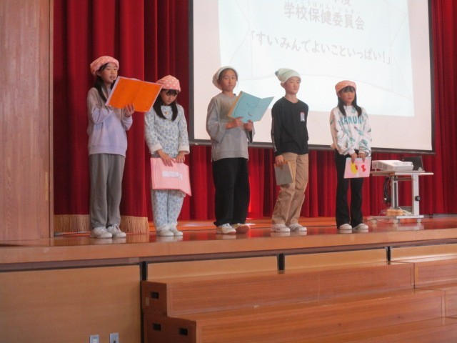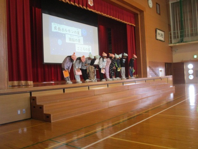 6時間目に体育館で学校保健委員会が行われました。たくさんの保護者の方々が残って参加してくださいました。みんなで自分の睡眠について考えることができました。