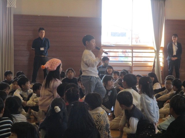 子供たちに感想を聞くインタビューがありました。たくさんの子供たちが手を挙げてくれました。