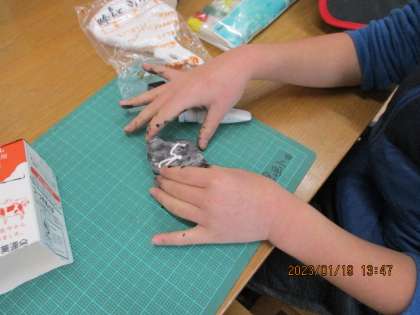 子供たちは、動物や貯金箱など、様々なものをつくろうとしています。 -