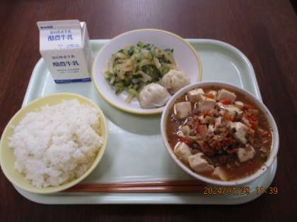 「きのうのマーボ豆腐おいしかったあ!」「かふう和えの野菜がちょっとしょっぱくて、おいしかった!」と、給食大好きの子供たちです。