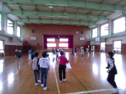 ひんやりとした体育館に、最初は「寒〜い!」と言っていた子供たちでしたが、みんなでおにごっこをして、すぐに体がぽかぽかになったようです。 -