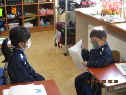 友だちに聞いてもらうのはちょっぴり緊張ですが、聞いてもらってとても嬉しそうな様子の子供たちでした。 -