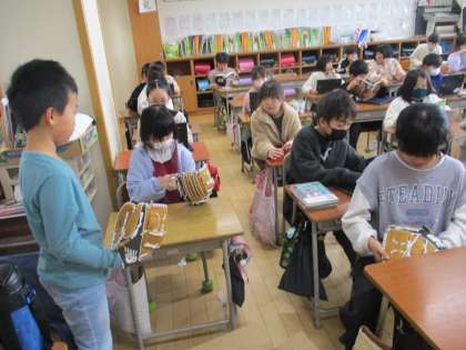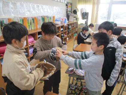 5年生から順番に、各学年の教室にグローブが回ってきました。