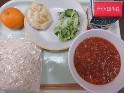 子供たちにも大人気のソフトめんのミートソースかけ。食べキリンできたようです。