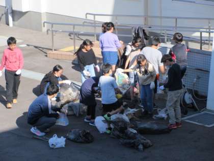 自発的に行っているごみひろいの活動。集めたごみを分類し、リサイクルできるものは洗ってきれいにしています。その意識がすてきです。