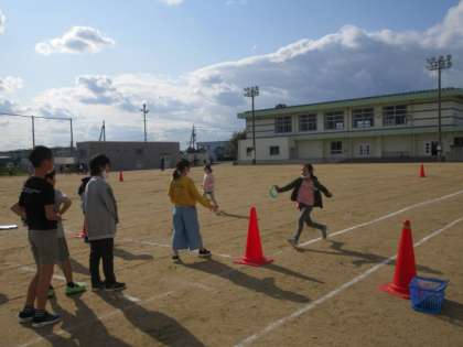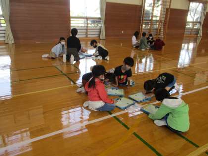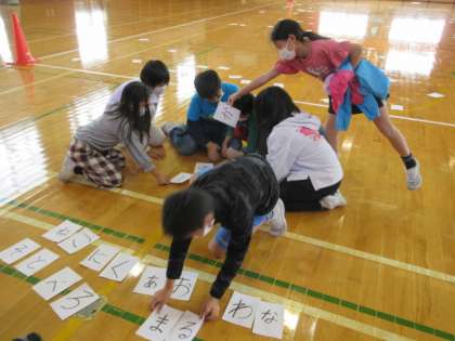 本校では、異年齢集団による縦割り活動を通して交流を深め、豊かな人間関係づくりを目指して、ファミリー活動を実施しています。その活動の一つとして、今日は校内オリエンテーリングを行いました。子供たちはグラウンドや校舎内で様々なゲームやクイズを楽しみました。ファミリーの友達と仲良く活動することができました。