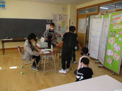 来年度入学する予定の子供たちの健康診断が行われました。5年生が会場の準備や片付け、受付、誘導などで大活躍。高学年のリーダーらしい行動ぶりでした。