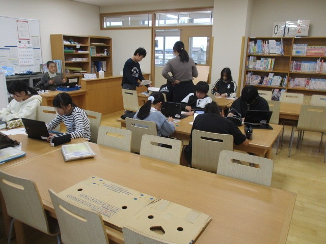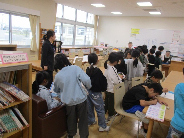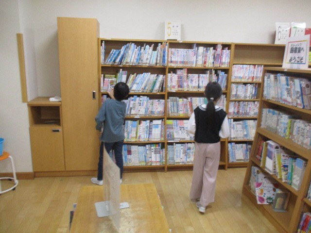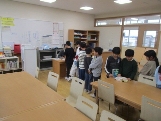 3年生は、3時間目に図書室にいました。本を選んで借りるところでした。