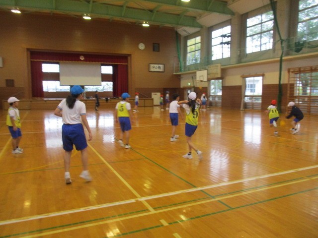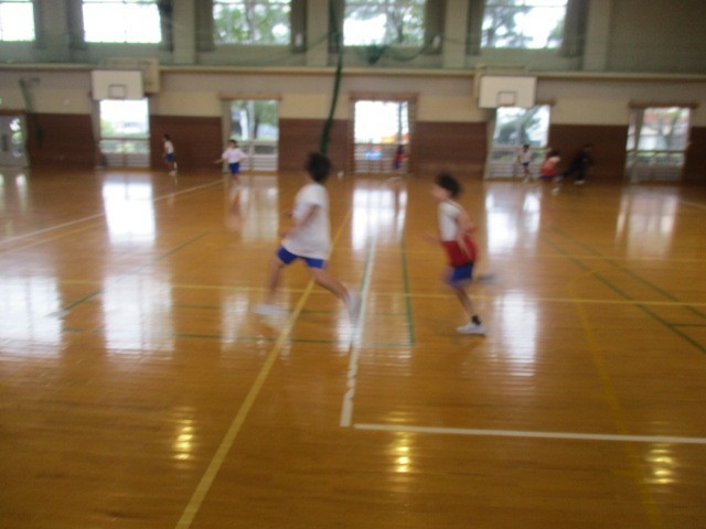 4年生は、3時間目に体育館にいました。おにごっこを楽しんでいました。