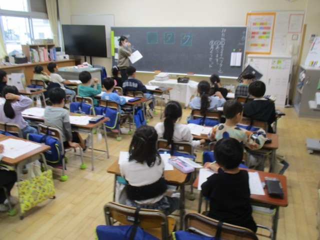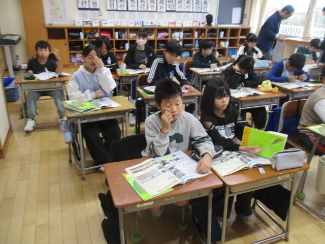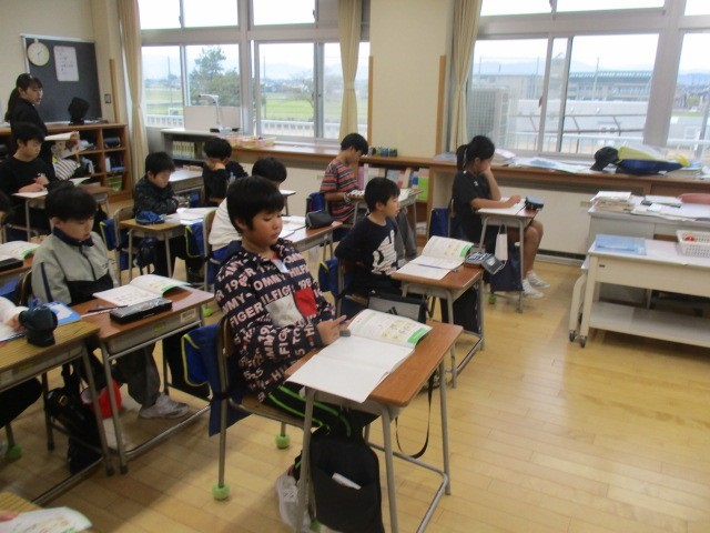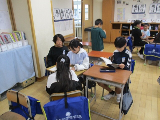 6年生の3時間目は、国語科の学習でした。「口約束」ということについて、実際のエピソードもまじえて友達に説明していました。