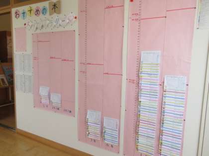 様々なジャンルの本に親しみ、楽しんで読めるように委員会の子供たちが企画したスタンプラリー。カードが続々と集まっています。クラスごとの目標を達成できるといいですね。
