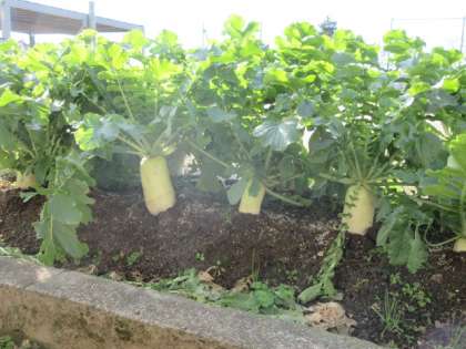 つばめ野級の花壇では、とてもりっぱな大根が収穫を迎えました。季節の野菜を味わうことができて幸せですね。 -