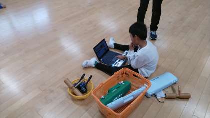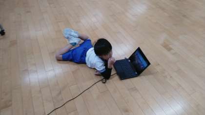 つばめ野級2組の1時間目は、音楽科の学習でした。動画を見ながら、楽器をならしたり、踊りを踊ったりするそうです。