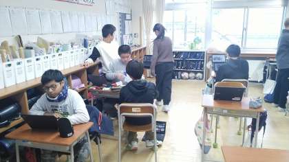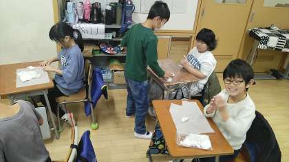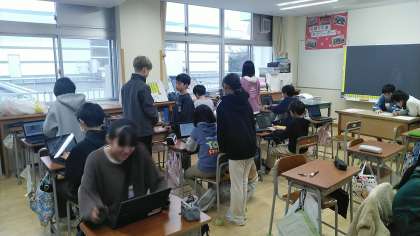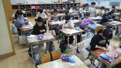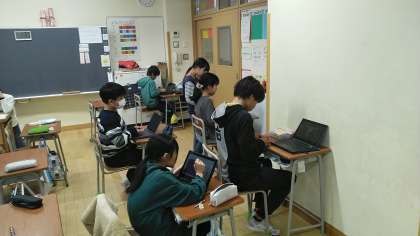 6年生は、3時間目にクロームブックを見ながら折り紙を折っている人が何人かいました。集会の準備を進めているみたいです。