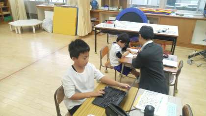 つばめ野級2組の3時間目は、クロームブックとプリントで学習を進めていました。