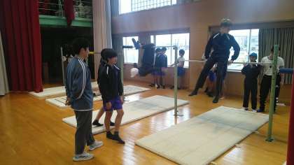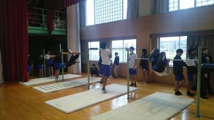 6年生の5時間目は、体育科の学習でした。体育館で鉄棒をしていました。