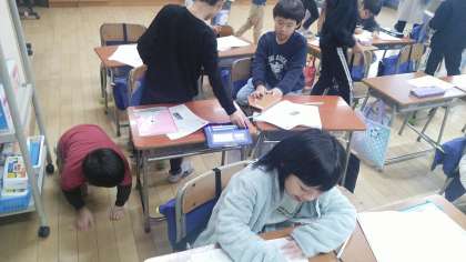 4年2組の5時間目は、テスト直しやテスト勉強をしていました。