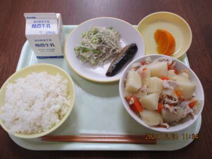 12月22日は冬至ということで、今日の給食は冬至献立でした。