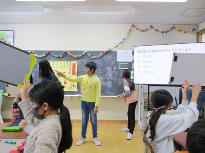 2学期の締めくくりとしてお楽しみ会をしました。それぞれの係がクラスみんなに楽しんでもらうよう考え、準備してきました。どの係の出し物も盛り上がり楽しむことができました。